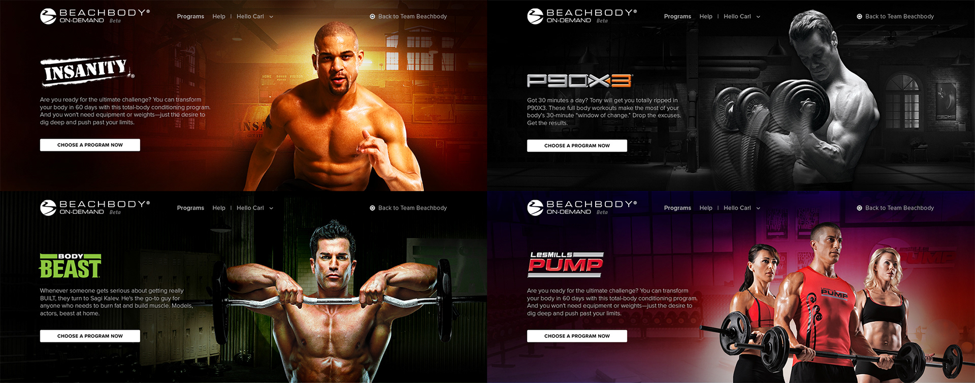Many assets were not ready for the new phase in Beachbody's online growth. These high quality assets had to be created with an updated look that would fit the new tone of the service. Along with what you see below, cover art was also created for each property on the service.